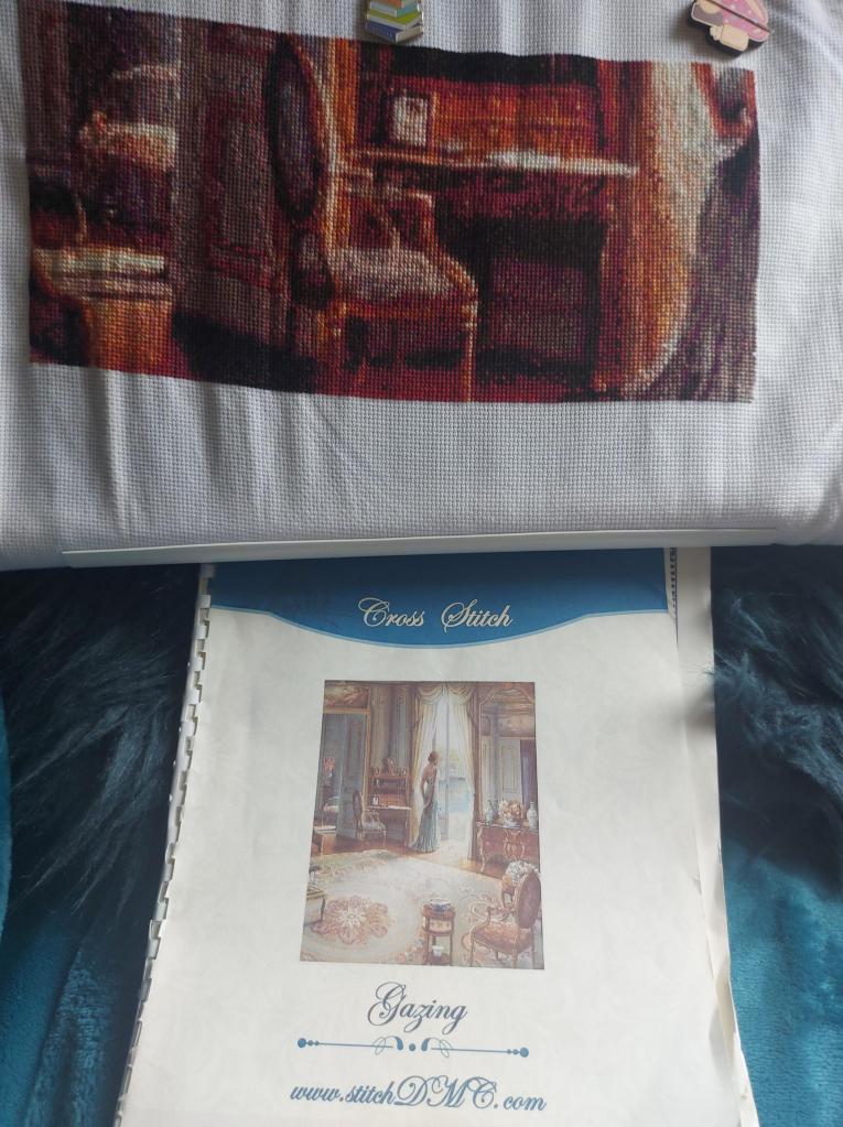 To combat stress, I have been spending random moments doing some more cross-stitching, have taken up knitting (for the first time in decades), and piano-playing (badly!). Being creative really helps me to keep my cool and so output of arts and crafts has been abundant! I started cross-stitching a massive picture last August, and then left it for a few months while I took up knitting again (my daughter was learning to crochet, and this reminded me of how much I used to like knitting the kids their jumpers when they were babies). Progress on this massive picture is VERY slow – who knows when it will get finished. Because it is so large, it is getting in the way at the moment especially with rooms having to be emptied for the electricians and, shortly, the heating rehaul. But, I am enjoying doing it whenever I have a spare hour or so.