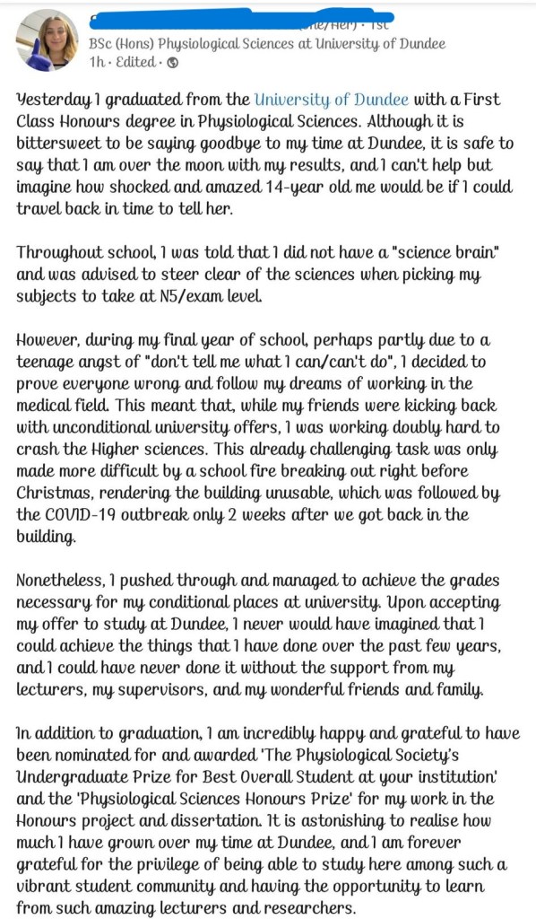 She is now back staying with us for a year as she prepares to sit her UCAT in the hope of applying to study dentistry at either Dundee, Aberdeen, or Glasgow University (sadly, Edinburgh Uni dropped their dentistry degree several years ago, who knows why!). She did receive three biomedicine-related offers for Masters degrees at Edinburgh, Aberdeen, and Dundee but she feels that dentistry is the way she wants to go. So, it’s a wait and see for her.